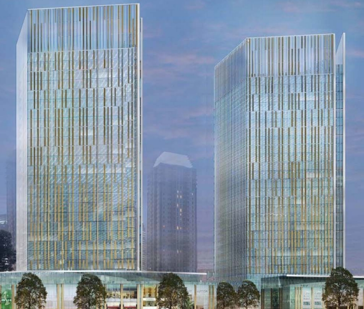 项目位于卢湾区,由2幢办公楼,3层商业裙房和4层地库组成。总建筑面积约为236,841m