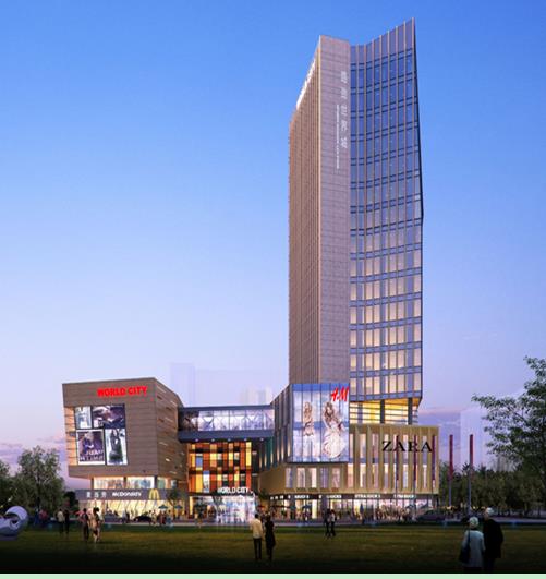 项目为18层商业综合体(4层及以下为商业,5层及以上为办公),占地约2万㎡,总建筑面积约11万㎡,地上建筑面积约7万㎡(其中4层以下商业面积约5万㎡,5层~18层办公面积约2万㎡),地下建筑面积约为4万平方米,其中包括约1万平方米地下商业。