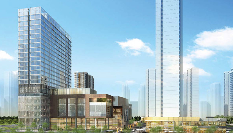| 项目由住宅、商业、酒店、公寓组成。住宅部分坚持以人为本的理念,以新的居住理念规划居住区内外空间,实现人与自然的和谐,购物中心公寓、酒店建筑造型一体化设计,以现代的体快感、虚实对比体现出现代化都市综合体的特点。本项目总建筑面积约为200,150㎡,购物商城建筑面积约为116,899㎡,酒店建筑面积约为42,943㎡,公寓建筑面积约为19,578 ㎡,地下商业建筑建筑约为17,700 ㎡,出售商铺建筑面积3,030 ㎡。 开发商:中航地产 服务范围:机电全过程服务 工程状况:在建 建筑师:美国RTKL 设计院:华阳国际 |
